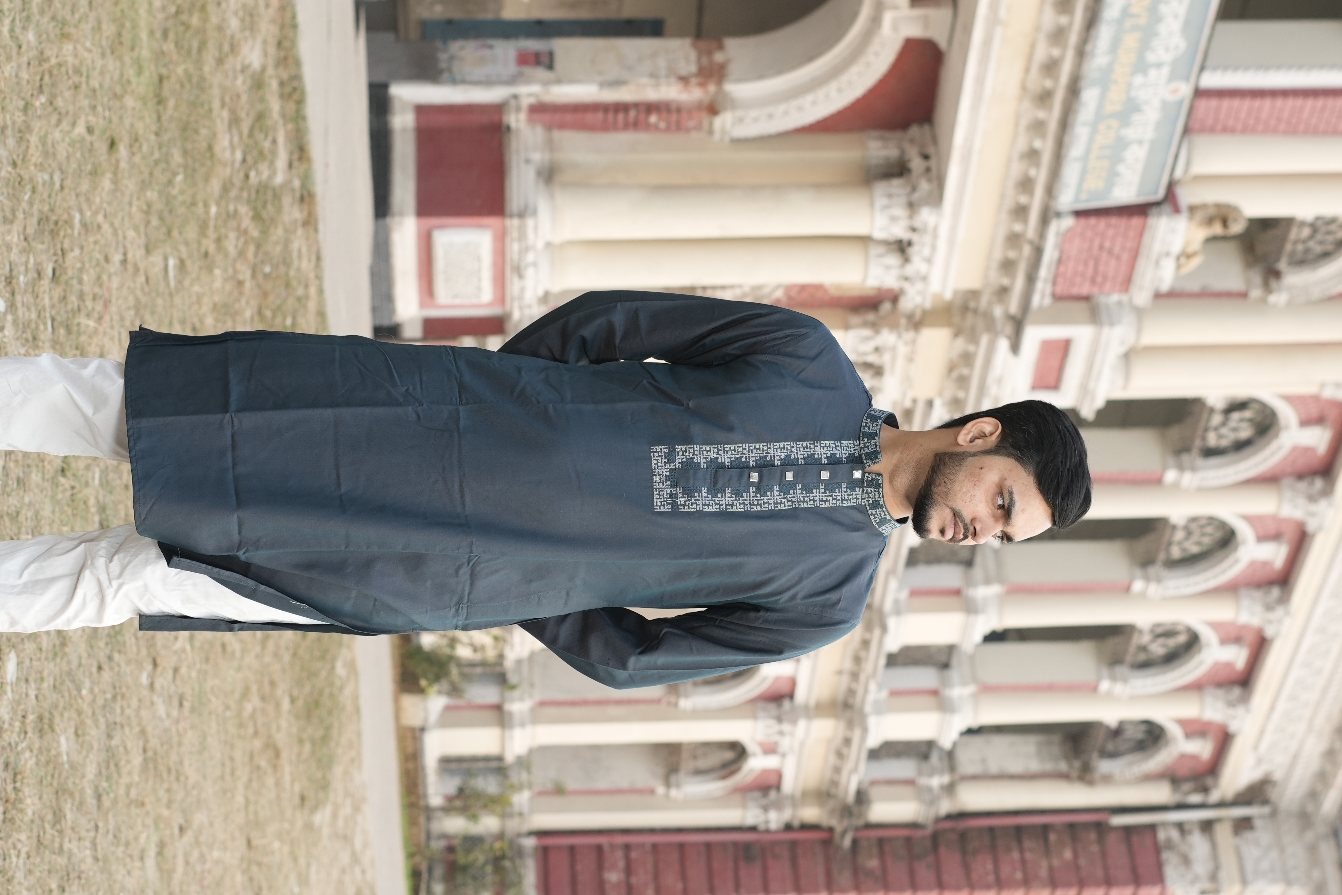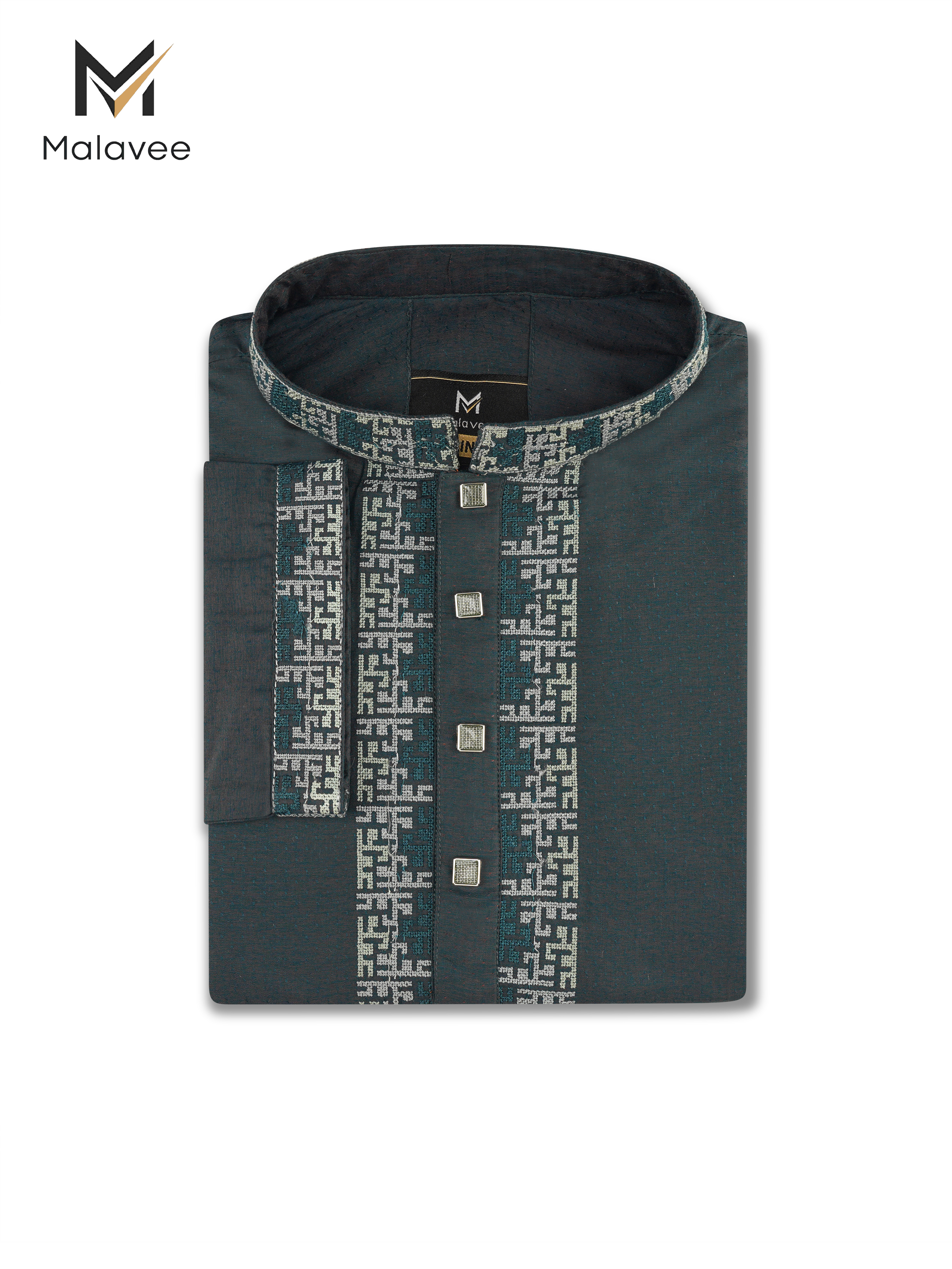 Modern embrodiary on chest, collar and cuff